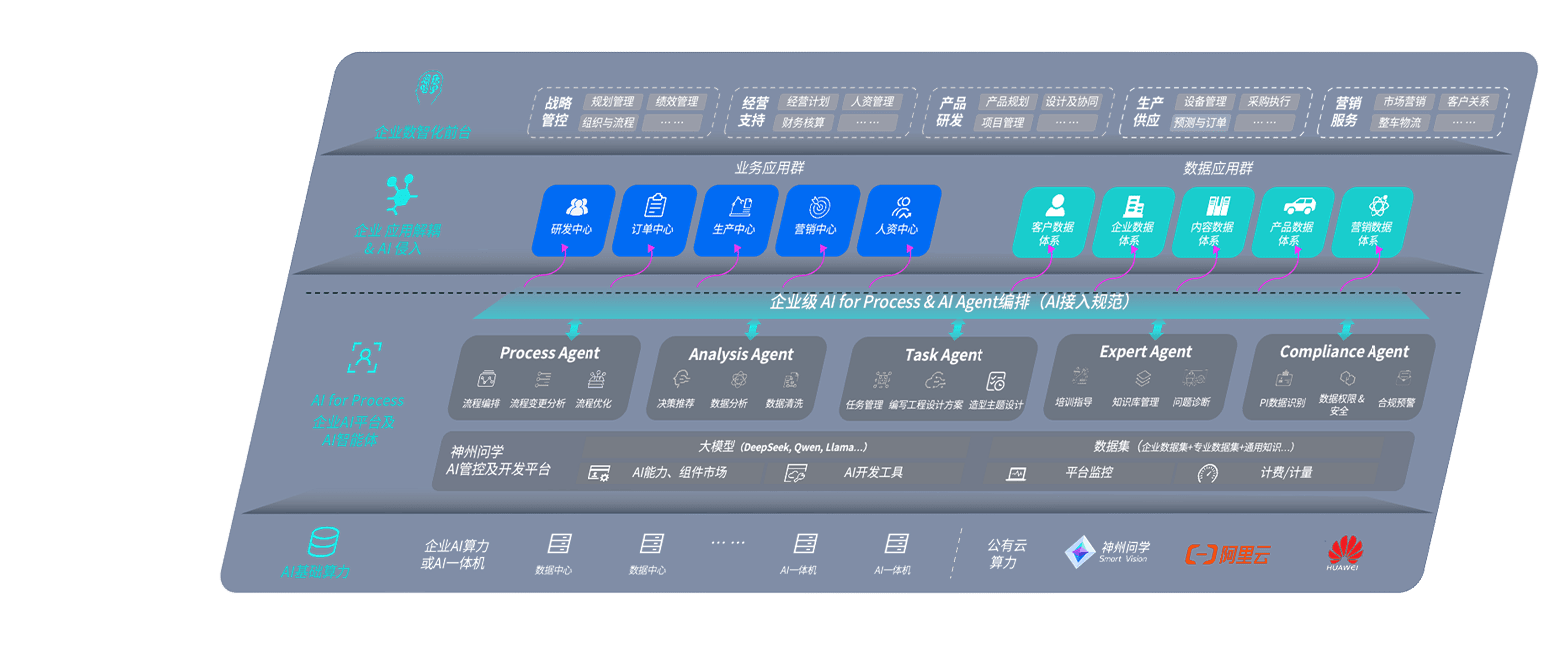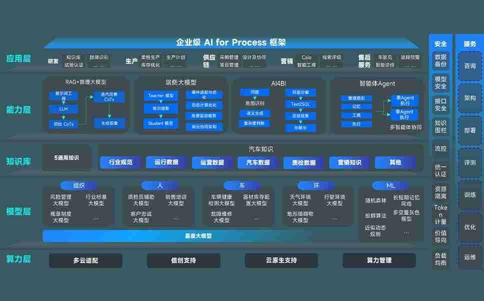 端到端的一站式AI工作空间深度融合了从企业战略规划到日常经营的全流程业务板块,,,,定向解决车企内部领域多、、部门多、、、、链条长、、、、场景碎片化等难题,,,,支持车企快速构建以AI为核心的生产力写作体系,,,实现任务执行与AI能力的无缝集成与交互